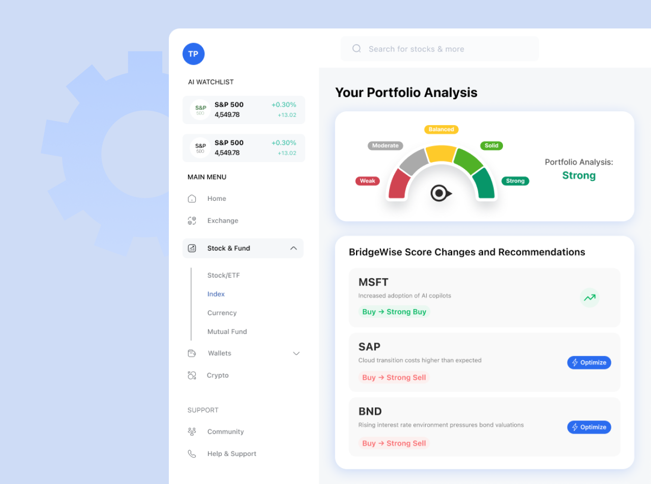 Bridgewise bridges these gaps, making investment opportunities accessible to everyone, everywhere. As the only AI-powered, comprehensive solution, it integrates diverse tools under one platform, empowering confident global investing.