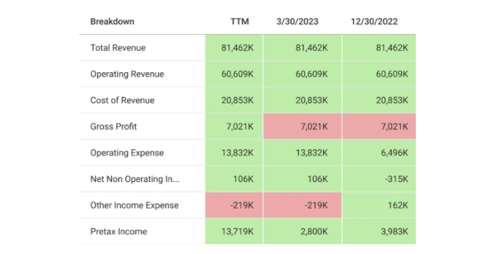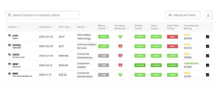 Our “Fundamental Highlights” widget offers retail investors clear insights into a company’s financial health and associated risks. Through a precise scoring and analysis process, complex financial data, enabling investors of all levels to make informed decisions with confidence. This widget is a game-changer, bridging the gap between intricate financial reports and actionable investment strategies.