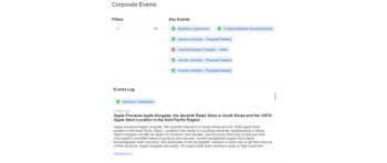 Corporate events analysis provides retail investors with up-to-date analysis on recent strategic events that occurred in the company such as: earnings releases, dividends, and other events opportunities to make well-informed trading decisions. By staying updated on , investors can strategically buy or sell stocks based on the company’s performance and strategic events.